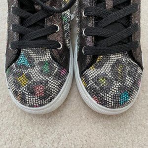 Steve Madden Kids' Jceecee Leopard Print Sparkly Bejeweled Lace Sneaker 3 NWT