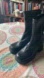 Stylish black leather ankle boots with a chunky heel. Perfect for any outfit.