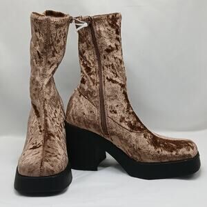 Steve Madden Klayton Women's 8.5M Brown Velvet Platform Whimsygoth Sock Bootie Boots Shoes.