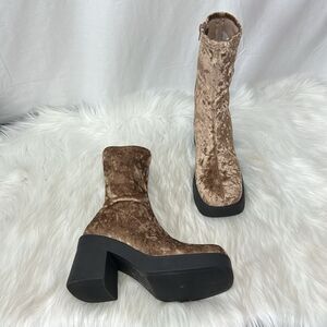 Steve Madden Klayton Crushed Velvet Platform Side Zip Stretch Booties Sz 7