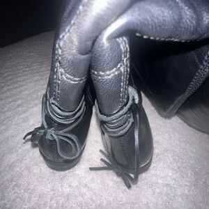 These awesome boots feature a closet lacing above the heel and a gold metal detail on the heel. They have an inner side zip and are approximately 19.5" tall. The sticker is still on the bottom and there is no wear on the sole.