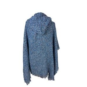 Steve Madden Knit Blue Hooded Open Front Cap with Pockets One Size Polyester