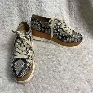 Steve Madden Korrie Lace-Up snake skin print Beige & gray Platform Sneakers SZ10