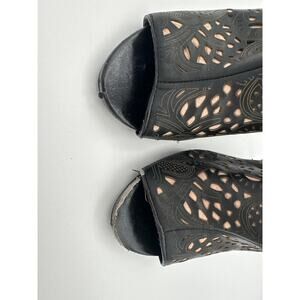 A bit of damage at toe on one shoe as shown in pics. Wouldn’t notice if you’re wearing them. Still a ton of life in these gorgeous stilettos!