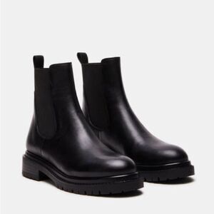 Steve Madden LYSETTE BLACK LEATHER Chelsea Ankle Boots Size 9.5