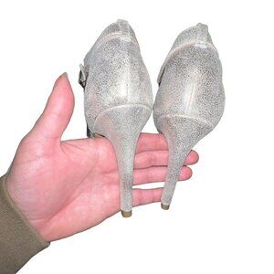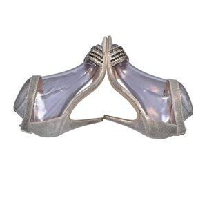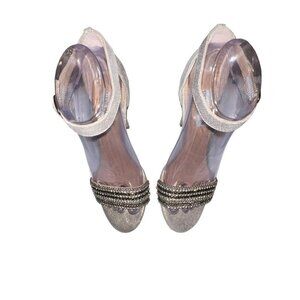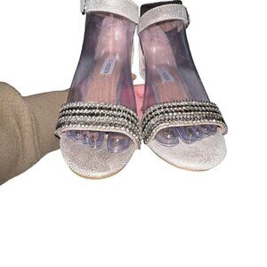 Steve Madden Laarah Women Open Toe Leather Heels Shoes Size 6.5 Silver Crystals.