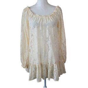 Steve Madden Lace Tunic Top Blouse Cream Sz Small Sheer See Through Peplum Hem