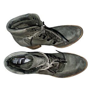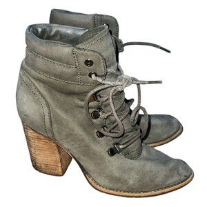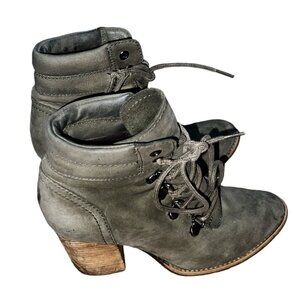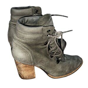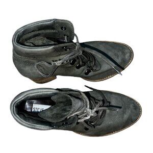 Steve Madden Lace Up Suede Ankle Boots Sz 6 Womens Army Green Chunky Heel