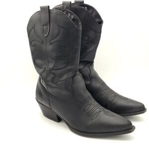 Steve Madden Ladies Western Boot Black Leather embroidered women's Size 10