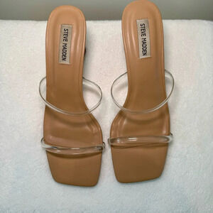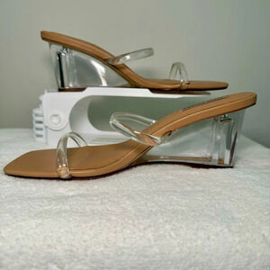Steve Madden Lameza wedge sandal women’s size 9.5. Clear heel and skinny straps
