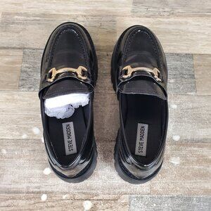 Steve Madden Lando Womens Shoes Sz 8 M Black Leather Tailored Lug Sole Loafer