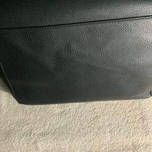 The Steve Madden Large Shoulder Tote Bag Purse Handbag with grommets is a stylish and practical accessory for women. This rectangular bag features a magnetic and snap closure, double black handles, and silver hardware accents. The exterior is made of faux leather and polyurethane in an aged black color, with inner pockets for organization. This large tote bag is perfect for travel, casual outings, or business use, and adds a touch of designer flair with its logo accents. Handcrafted in Cambodia, this purse combines fashion and functionality for a chic look.