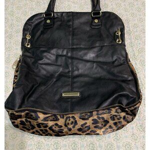 Steve Madden Large Purse Handles Black Expandable Leopard 15" x 14" Gold Hardwar