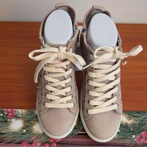 Steve Madden Laser Cut Zippered Suede Tan Woman's Mid Top Sneakers Sz 7 NWD