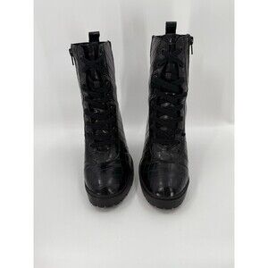 Steve Madden Latch Croc-Embossed Side Zip Goth Hiker Booties 4 Inch Heel EUC