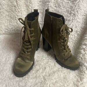 Steve Madden Laurie Fabric Satin olive green lace up heels boots.SZ 10M. Pre in good used condition normal wear see all pictures any questions please message.