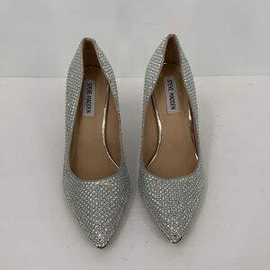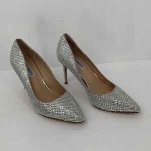 Steve Madden Laveda mirror crystal pumps silver stiletto shoe formal shimmer 6.5