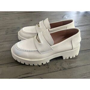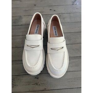 Steve Madden Lawrence White Bone Leather Chunky Platform Loafers Size 6