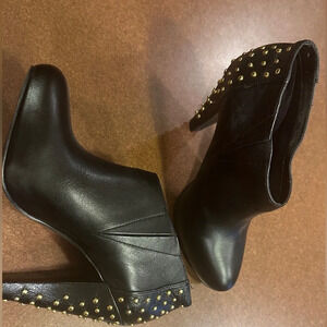 Steve Madden Leather Ankle Boots Womens 7.5 M Gold Studded Clubbin Black