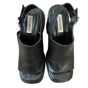 Steve Madden Leather Forza Sandal US 7 Black Block Heel Slingback Chunky Y2K