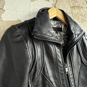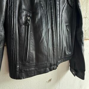 Steve Madden Leather Moto Jacket Black Genuine Leather Full Zip Cafe Racer Small