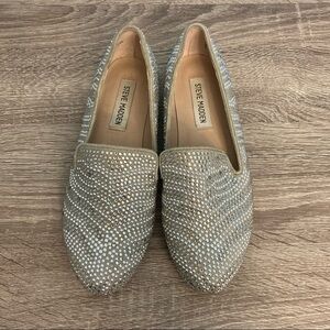 Steve Madden Leather Rhinestone Flats - Silver/Cream - Size US6.5