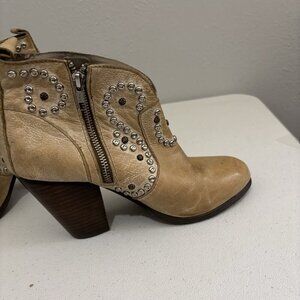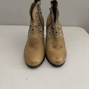 Steve Madden Leather Studded Western Booties Tan Size 8.5