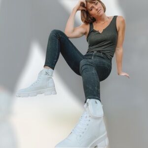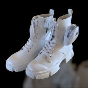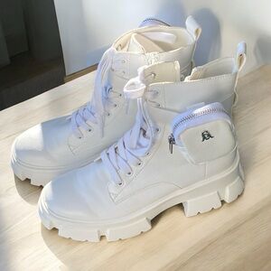 Steve Madden Leather Thora P Xtra Chunky Lug Sole Pouch Tanker E-Bootie White 8
