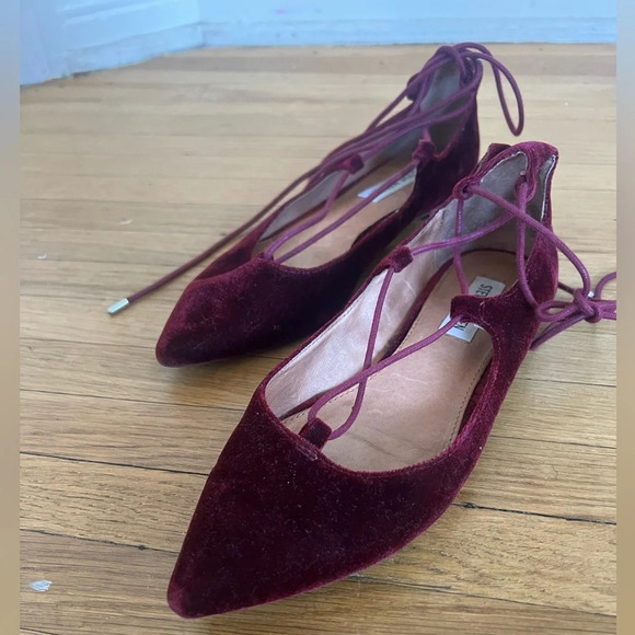 Steve Madden Lecrew Burgundy Tie Up Velvet Ballet Flats | Size 7