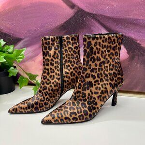 Steve Madden Leena Leopard Print Pointed Toe Stiletto Ankle Boots Size 6.5