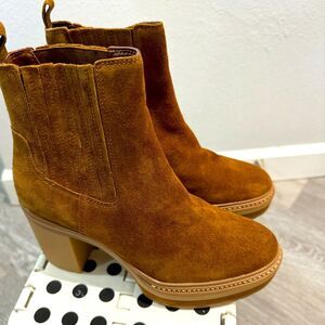 Steve Madden Lenny Brown cognac suede platform block heel ankle booties size 8
