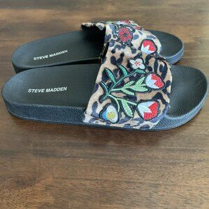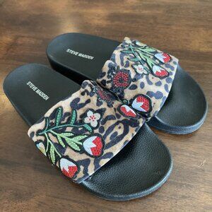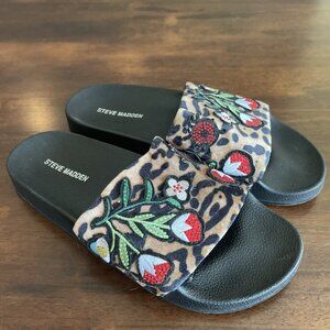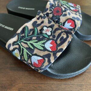 Steve Madden Leopard Flowers Footbed Slides Sandals Flats Rockabilly Women's 9