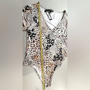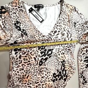 Steve Madden Leopard Long Sleeve Bodysuit, V-Neck, Snap Closure, Size Large, NWT