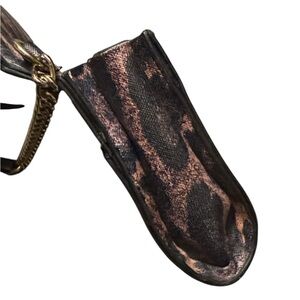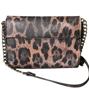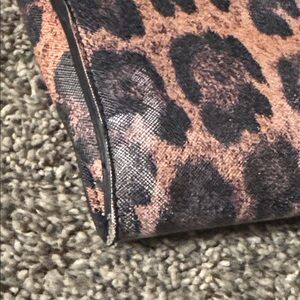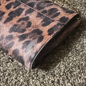 Stylish leopard print clutch featuring a gold zipper. Perfect for a night out. 7.25”(L) x 6”(H)
