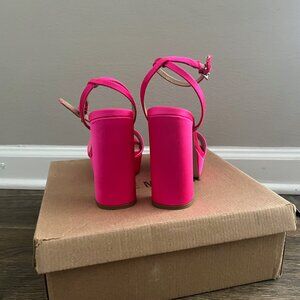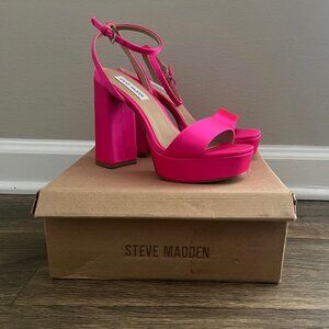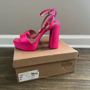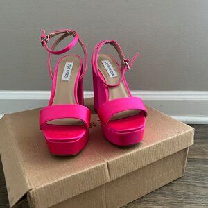 Steve Madden Lessa Sandal Platform Heel Pink Satin Fabric Size 6