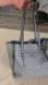 Stylish and spacious tote. Light blue color. Ideal for daily use. Has pen stain inside but other than that as you can see it's excellent Condition, plain light blue suede inside