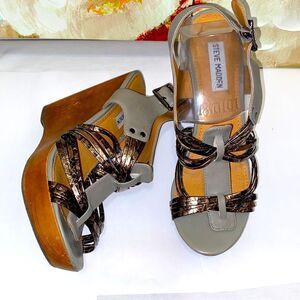 Steve Madden Like New Leather Wedge Platform Tampa Sandals