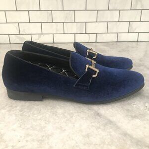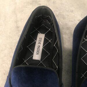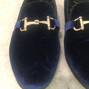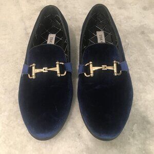 Steve Madden Loafers Shoes Mens Size 7.5 Navy Velvet Horsebit Slip On Coime Gold