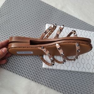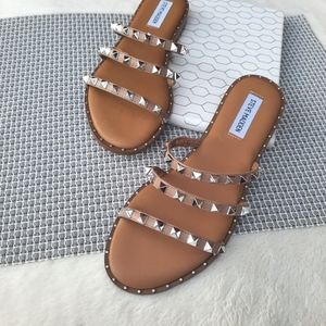 Steve Madden Lodell Rock Stud Flat Sandals Taupe Silver 8 NEW Blogger Fave