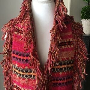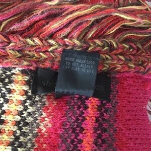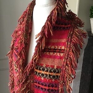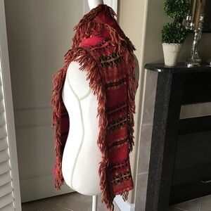 Steve Madden Long Knit Fringed Neck Scarf Muffler Acrylic Boho Pink Red Multi. Scarf is an excellent preowned condition. 100% acrylic. Measures approx. 6” wide 72” long and has an additional 3” of fringe on both sides. Unique style—boho, nordic and western vibes.