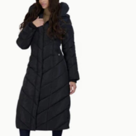 Steve Madden Long Maxi Winter Puffer Coat, QUALITY MADE, BLACK, SMALL