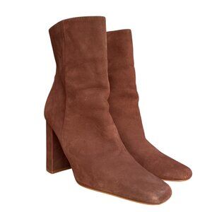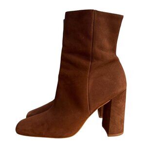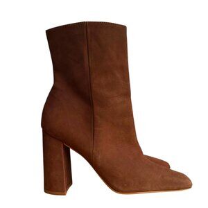 Steve Madden Lourde Leather Square Toe Block Heel Ankle Boot Brown Size 9