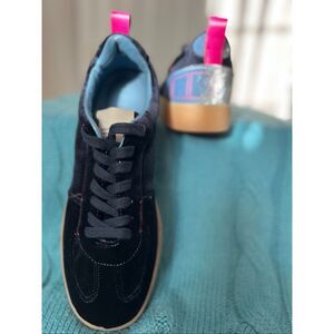 Hard to find Navy contrasting w/light blue and pink. Lots of sizes and available for this color style are no long available. This pair is brand new, and has never been worn.