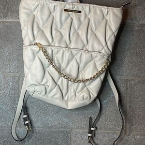 Steve Madden Lucca Quilted Backpack With Swag Chain in White