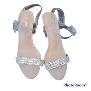 Steve Madden Lucite Clear Ankle Strap Block Heel Dress Sandals with Rhinestones