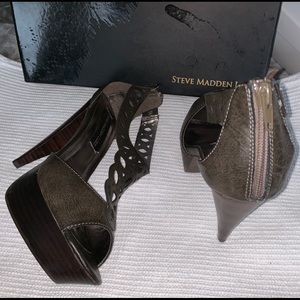Steve Madden Luxe Platform pumps - Open toe leather Platform pump sandals with lace detail down the center and around ankle. Back zipper closure. Color: taupe. Never worn