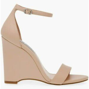 Steve Madden Mallor Tan Wedge Ankle Strap Round Toe Heel Sandals Size 9