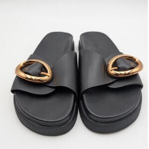 Steve Madden Mandie Slide Sandals Women's Leather Black/Gold Size US8M EU38.5