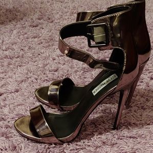 4 inch Stilleto in a Pewter color. Size 9, worn once. Buckle on side around ankle. Very beautiful shoe.