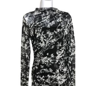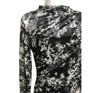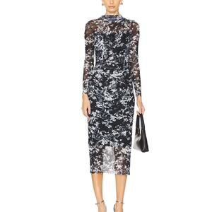 Steve Madden Maureen Long Sleeve Mesh Midi Dress S Black White